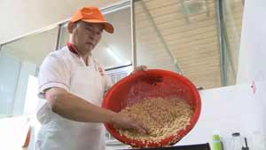 成韦:原材料必须要清洗干净,不然吃到嘴里就会碜。还有就是我们的油都是板油回来用白糖腌制冷冻15天之后才用的。我们的藕粉都是用的深水藕,还有五仁都是最上等的材料,用的水都是纯净水。
